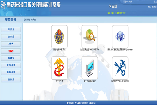 思沃進(jin)(jin)(jin)出口報(bao)(bao)關(guan)(guan)模擬實訓平臺系(xi)統的(de)(de)報(bao)(bao)關(guan)(guan)業(ye)(ye)務(wu)包含了一(yi)(yi)般貿易(yi)、易(yi)貨貿易(yi)、來料(liao)加工(gong)、進(jin)(jin)(jin)料(liao)非對(dui)口、低值輔料(liao)、租(zu)賃不滿一(yi)(yi)年、租(zu)賃貿易(yi)、寄售代銷、貨樣廣(guang)(guang)告品(pin)(pin)A、貨樣廣(guang)(guang)告品(pin)(pin)B、無代價(jia)抵償、援助(zhu)物(wu)資(zi)、其他(ta)貿易(yi)的(de)(de)進(jin)(jin)(jin)口和出口。在(zai)(zai)該實訓教(jiao)學軟件中學生(sheng)可(ke)以在(zai)(zai)實驗中模擬外貿企業(ye)(ye)和報(bao)(bao)關(guan)(guan)行(xing)兩(liang)種角色,兩(liang)個角色的(de)(de)業(ye)(ye)務(wu)重點突出,依據不同的(de)(de)貿易(yi)方式、進(jin)(jin)(jin)出口國家、商(shang)品(pin)(pin)監管完成相關(guan)(guan)的(de)(de)任(ren)務(wu)。通過報(bao)(bao)關(guan)(guan)實驗使學生(sheng)將報(bao)(bao)關(guan)(guan)業(ye)(ye)務(wu)的(de)(de)理論和實踐聯系(xi)起來,提高學生(sheng)的(de)(de)操(cao)作能(neng)力,為走出校(xiao)門(men)成為操(cao)作型(xing)的(de)(de)人才服務(wu)于國際貿易(yi)而打下基礎。
