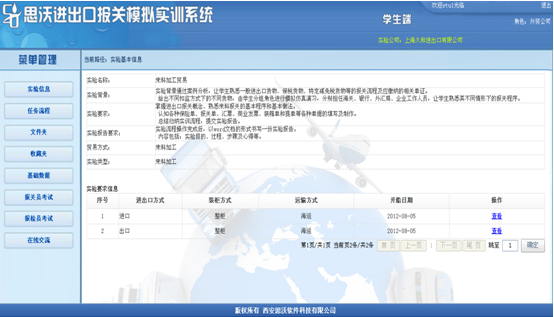 實(shi)驗信息、任務流程、文件夾、收藏夾、基礎數據和在(zai)線交流可(ke)參(can)考(kao)外(wai)貿公司中(zhong)相(xiang)同的模塊。