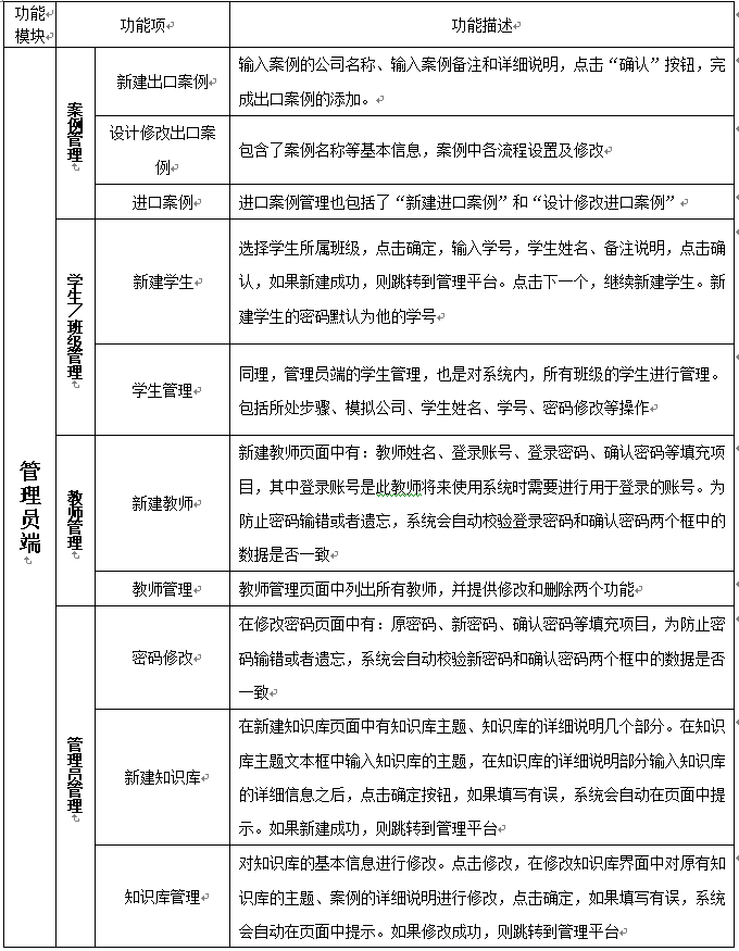 整個(ge)平臺系統(tong)的(de)目(mu)標(biao)是建立一(yi)個(ge)國際(ji)貿(mao)易的(de)輔助(zhu)教(jiao)學(xue)系統(tong),并能(neng)將國際(ji)貿(mao)易教(jiao)學(xue)過程中所需要的(de)各實踐點進行較好的(de)體(ti)現。