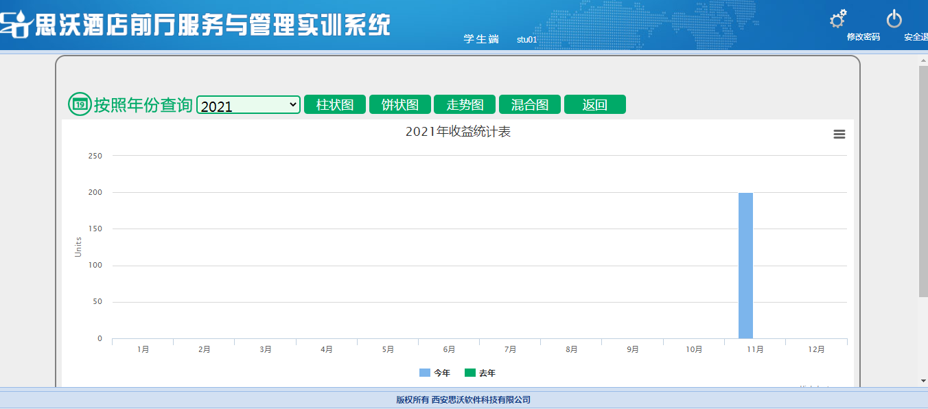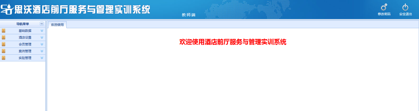 思沃酒(jiu)店前(qian)廳(ting)服(fu)務(wu)與管(guan)理(li)模(mo)擬實(shi)訓平(ping)臺系(xi)統以學(xue)生酒(jiu)店前(qian)廳(ting)工(gong)作(zuo)崗位任務(wu)為(wei)基礎,以案例(li)動畫結合的模(mo)式開展(zhan)情景模(mo)擬實(shi)訓,學(xue)生可在該(gai)教學(xue)軟件設置的虛擬酒(jiu)店環境中,完成(cheng)預定、入住(zhu)辦理(li)、續住(zhu)、退房(fang)、換房(fang)、會(hui)員(yuan)管(guan)理(li)、故(gu)障(zhang)報修、投訴處理(li)、黑名單等相關(guan)案例(li)任務(wu)的操作(zuo)。該(gai)教學(xue)平(ping)臺軟件可以逼真的體(ti)驗實(shi)際酒(jiu)店前(qian)廳(ting)工(gong)作(zuo)的過(guo)程。本公司(si)為(wei)了(le)更好滿(man)足(zu)高校的教學(xue)需求,也會(hui)根據(ju)高校的需求提(ti)供酒(jiu)店管(guan)理(li)實(shi)訓室解決方案,