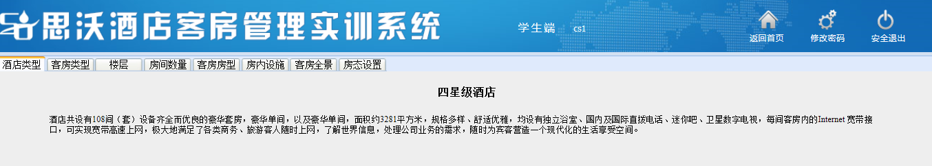 關鍵詞:思(si)沃高(gao)校(xiao)酒店客(ke)房管(guan)理教(jiao)學實(shi)訓系統 酒店客(ke)房管(guan)理實(shi)訓教(jiao)學軟件 酒店客(ke)房管(guan)理實(shi)訓教(jiao)學平臺