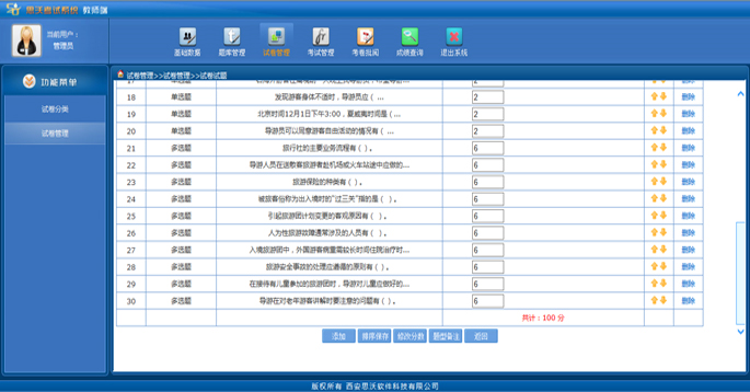 考試的題(ti)型顯示順(shun)序可自由指(zhi)定,出(chu)卷策略靈(ling)活。