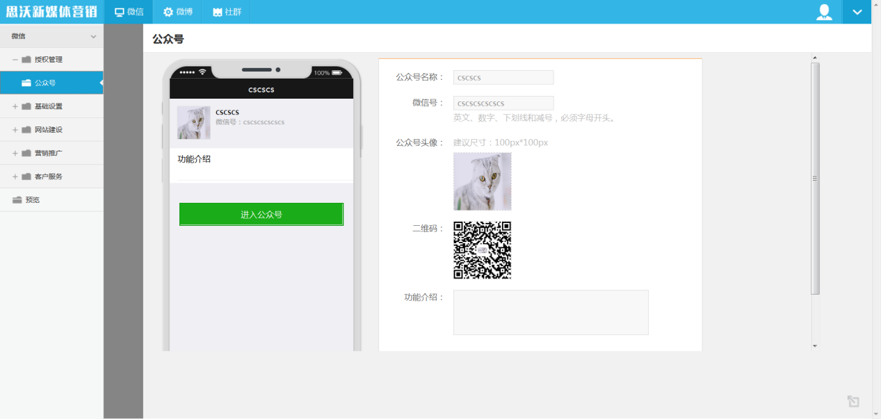 思沃新媒體營(ying)(ying)(ying)銷(xiao)模擬實訓平臺系統(tong)模擬了真實的新媒體營(ying)(ying)(ying)銷(xiao)環境,提供(gong)包括(kuo):微(wei)信營(ying)(ying)(ying)銷(xiao)、微(wei)博(bo)營(ying)(ying)(ying)銷(xiao)和(he)社群營(ying)(ying)(ying)銷(xiao),用戶(hu)根據該教學軟(ruan)件系統(tong)提供(gong)的營(ying)(ying)(ying)銷(xiao)模塊(kuai)進(jin)行(xing)營(ying)(ying)(ying)銷(xiao)操作,新媒體營(ying)(ying)(ying)銷(xiao)主要以微(wei)信公眾號,微(wei)博(bo),社群這(zhe)三種營(ying)(ying)(ying)銷(xiao)模式(shi)為主進(jin)行(xing)實訓。