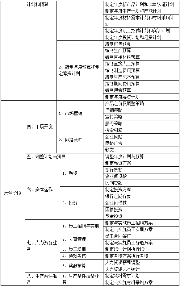 跨(kua)專(zhuan)業(ye)(ye)(ye)平(ping)(ping)臺(tai)主要由搭建平(ping)(ping)臺(tai)運行(xing)環境、制造企業(ye)(ye)(ye)運營、行(xing)政(zheng)業(ye)(ye)(ye)務和(he)金(jin)融業(ye)(ye)(ye)務等(deng)幾大(da)部(bu)(bu)(bu)分組成。以現代(dai)制造行(xing)業(ye)(ye)(ye)為藍本,設置總(zong)經(jing)理(li)辦(ban)(ban)公(gong)室、銷售部(bu)(bu)(bu)、生產(chan)部(bu)(bu)(bu)、采(cai)購部(bu)(bu)(bu)、倉(cang)儲(chu)部(bu)(bu)(bu)、外(wai)貿部(bu)(bu)(bu)、市(shi)場部(bu)(bu)(bu)、財務部(bu)(bu)(bu)、人才(cai)資源部(bu)(bu)(bu)、企業(ye)(ye)(ye)投資融部(bu)(bu)(bu)等(deng)十大(da)制造企業(ye)(ye)(ye)職能部(bu)(bu)(bu)門;真實模擬行(xing)政(zheng)辦(ban)(ban)事(shi)部(bu)(bu)(bu)門,提供工(gong)商(shang)局(ju)、稅(shui)務局(ju)、會計事(shi)務所(suo)、銀(yin)行(xing)、物流(liu)、保險公(gong)司(si)(si)、貸代(dai)公(gong)司(si)(si)等(deng)辦(ban)(ban)事(shi)場所(suo);系統虛擬扮(ban)演公(gong)安局(ju)、質量與(yu)技(ji)術監督局(ju)、勞(lao)動(dong)與(yu)社會保障局(ju)、原材料供應商(shang)、海(hai)關、商(shang)檢、外(wai)匯(hui)管(guan)理(li)局(ju)、船公(gong)司(si)(si)等(deng)服務性(xing)部(bu)(bu)(bu)門行(xing)業(ye)(ye)(ye)。攘括(kuo)了(le)與(yu)制造行(xing)業(ye)(ye)(ye)有關的所(suo)有相關行(xing)政(zheng)辦(ban)(ban)事(shi)部(bu)(bu)(bu)門和(he)服務性(xing)行(xing)業(ye)(ye)(ye)。